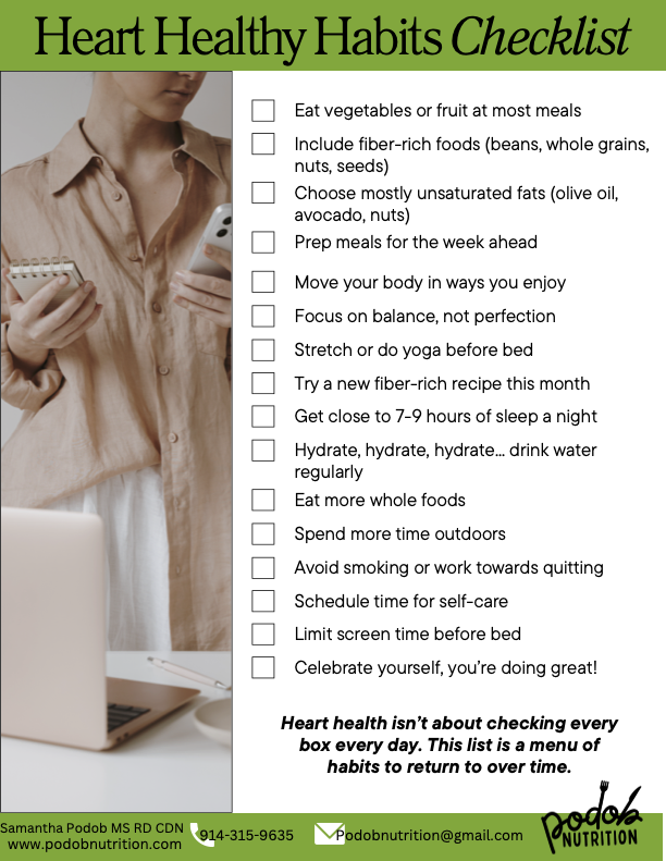 Heart Healthy Habits Checklist (Free PDF). by Samantha Podob MS, RD, CDN